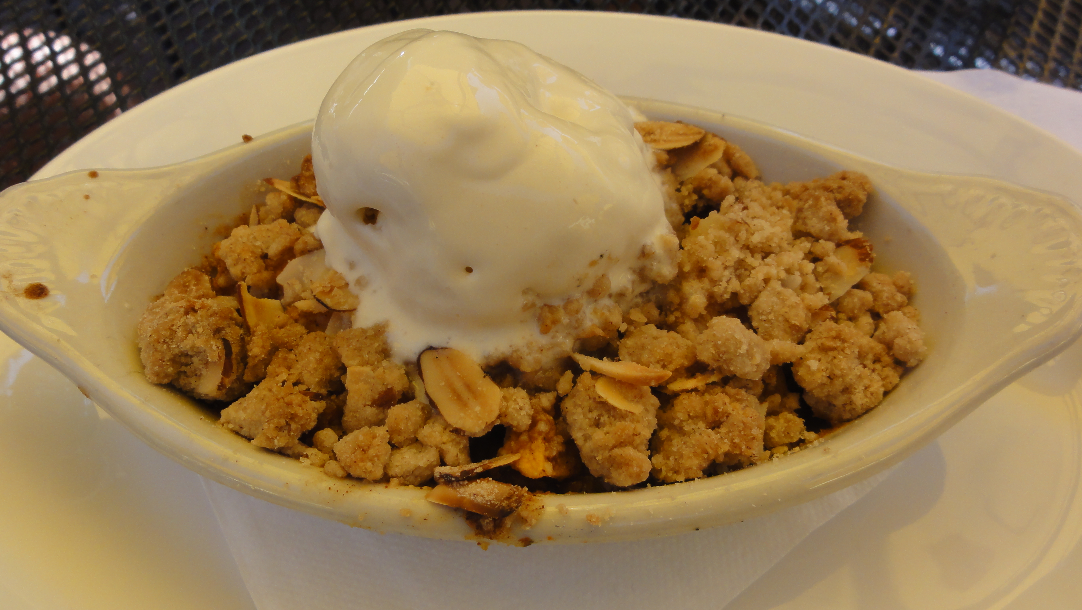 We were filled, but not stuffed, so for dessert Leise ordered the Pineapple and Papaya Cobbler topped with vanilla ice cream. Crumbly crust which was amazing. I ordered the brownie with banana foster. I found the brownie to have good flavor but a little cakey. My retired gourmet chef wife, thought the brownie was perfect…