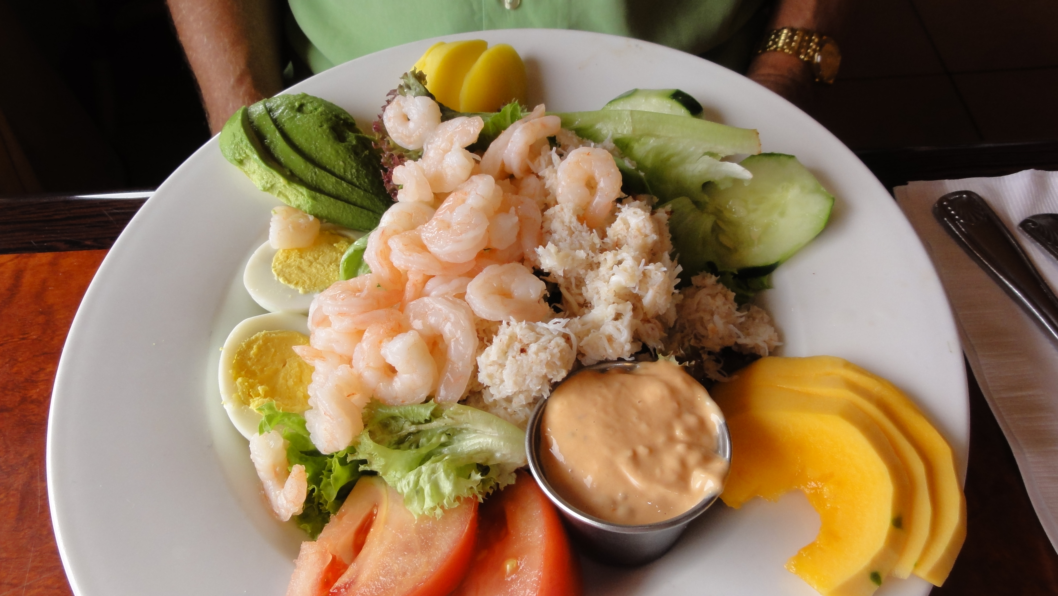 I ordered the Crab & Shrimp Louie Salad. The thousand island dressing is a nice complement, not over powering, to the shrimp and crab. The fresh mango, papaya, cucumber, tomato, and egg, wedges on a bed of fresh mixed make the salad a complete meal which is a pleasure to the palette. Based on everything we are eating now, I am excited to try dessert.