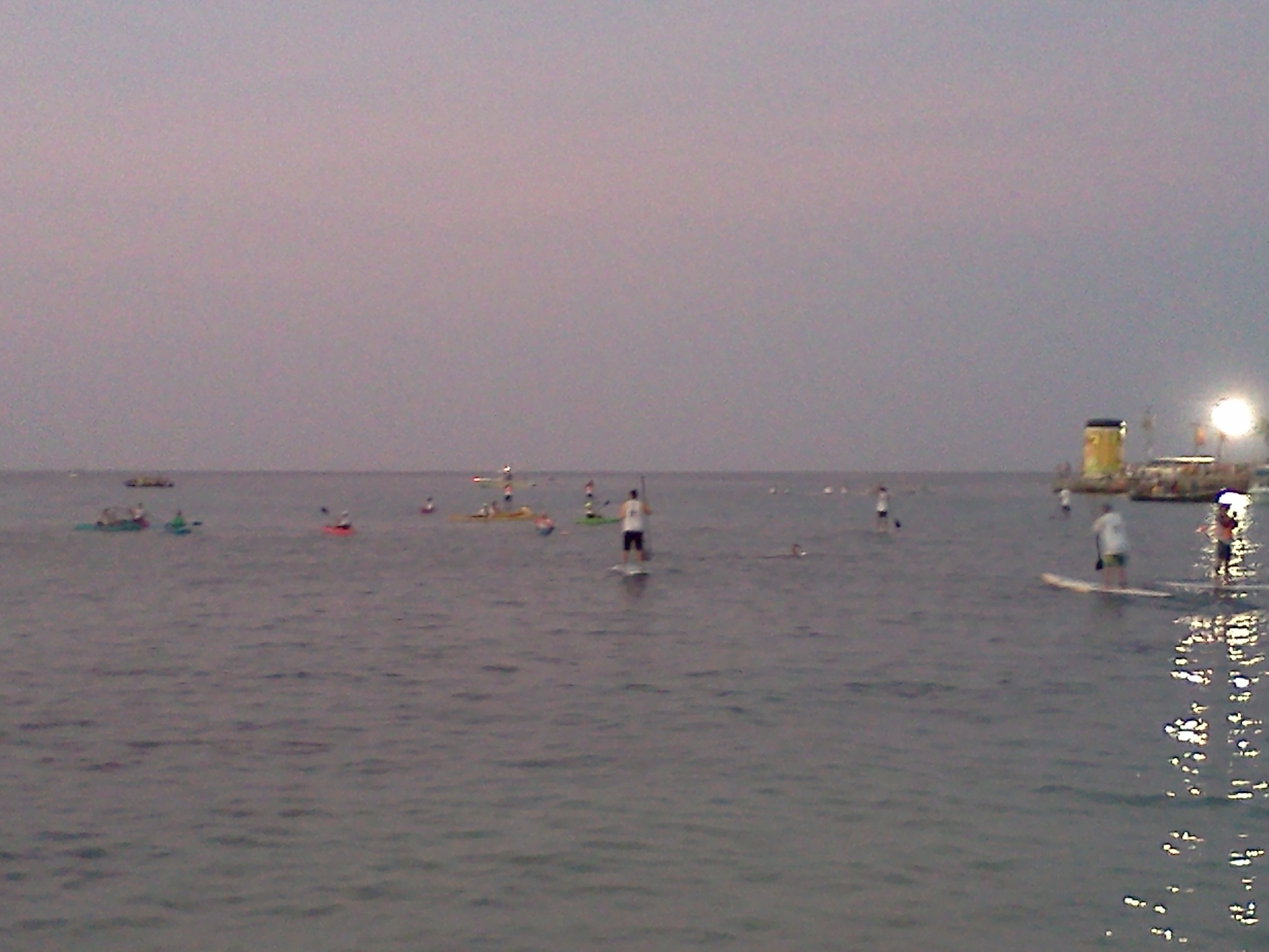 Ironman 2013 – Kayaking and paddle boarding rescue crews prepare for the race. The professional men start in 20 minutes