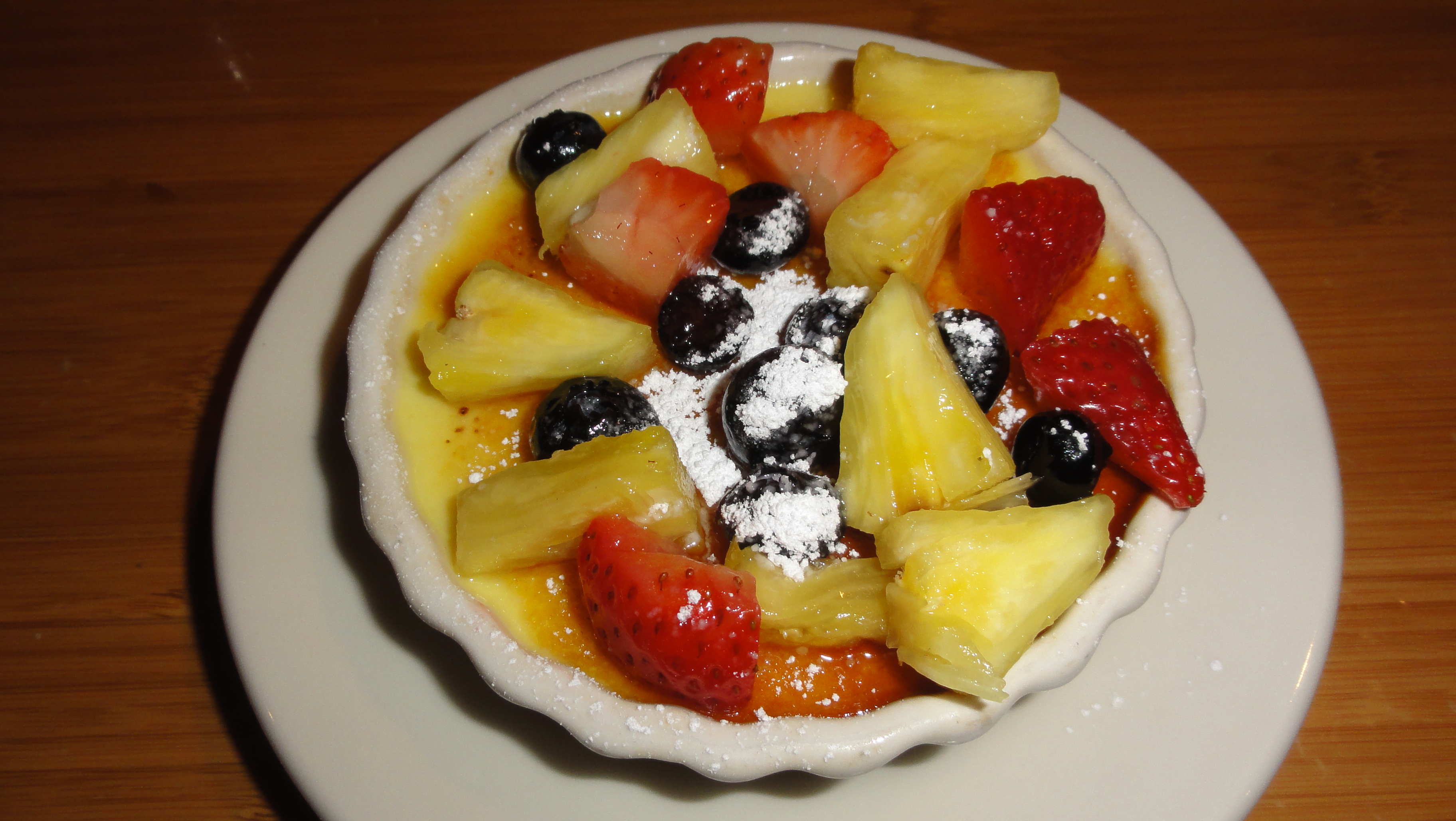 Leise ordered the Creme Brûlée. It’s a vanilla creme brûlée, again baked to perfection, topped with fresh pineapple, blueberries, and Waimea strawberries. It is very smooth and creamy. Seldom, if ever, will I back away from a good dessert. I did marry a pastry chef for a reason. I actually just pushed away the coffee cake with two bites left.