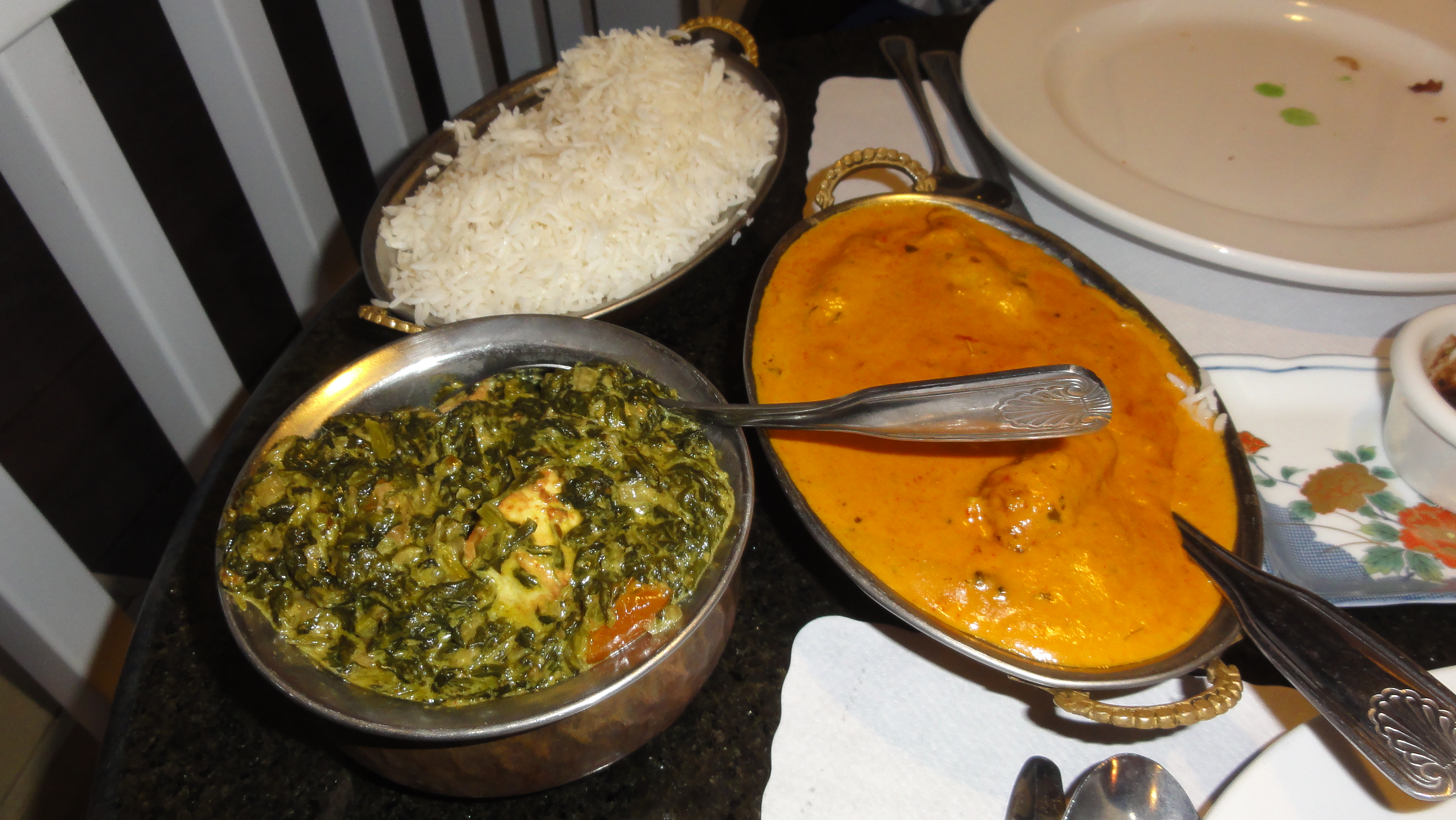 We also order Palak Paneer: A flavorful blend of spinach and cubes of delicate homemade cottage cheese. It has a light smooth flavor. Good, fresh and the spinach is not over powering, but not overly impressive. It’s just simply good. Leise loves it, but she loves the fried cheese. With the homemade sweet chili mango chutney the contrast is actually quite nice.