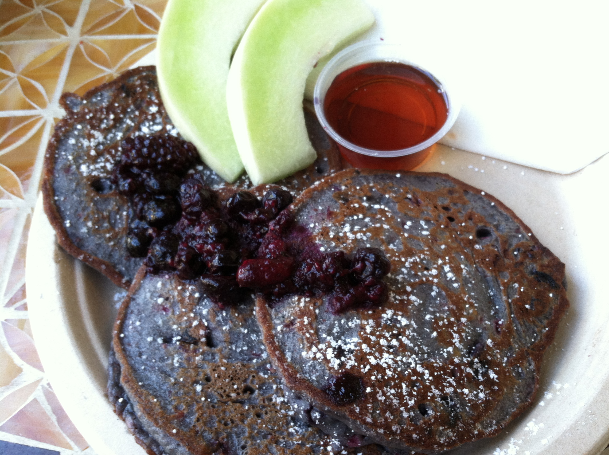 I started with a couple juice drinks. First is the Third Eye Opening: organic carrots, apple, and ginger juice. It is wonderful. Second is the Mermaid Magic: organic local kale, local cucumber, celery, apple, melon & local Hawaiian spirulina. I drank almost all of the Third Eye in one continuous drink. It’s very refreshing. I took a large draught of the Mermaid Magic. The 2 minutes latter my entire consciousness opened up. I found myself staring out through the buildings to the ocean. Just staring and my mind opened into realms not ventured before. As I take another large draught of Magic I feel my essence relax as I contemplate my Athena wrap. I think I shall try it. It taste like a fresh Greek salad in a tasty gluten free wrap. It’s quite interesting.