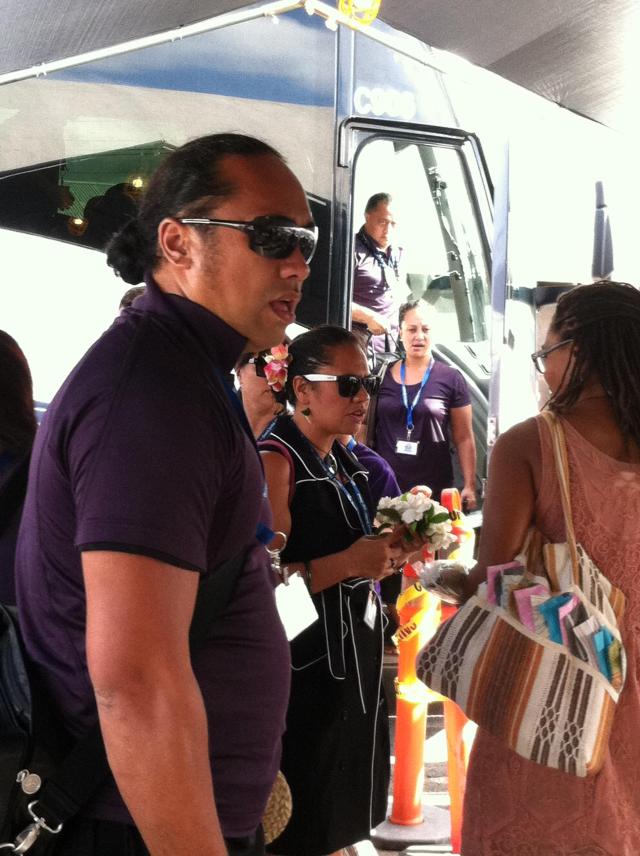 At Merrie Monarch Festival in Hilo, HI. Watching hula halaus arrive from throughout the world.