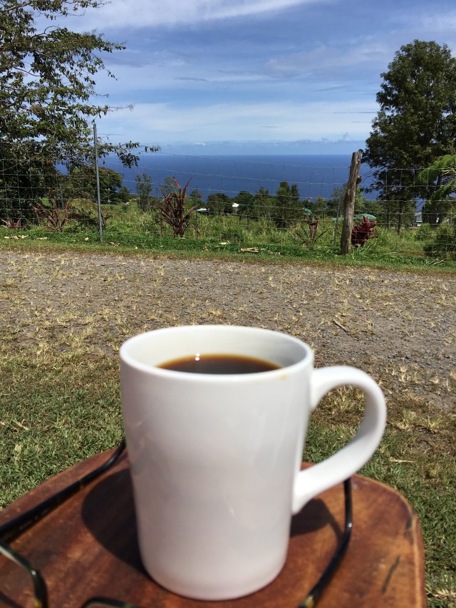 The coffee is so smooth it is relaxing to me. The non-food combining meal is bringing on the Kanak Attack. Kanak attack is the Hawaiian equivalent of a food coma. Now it is time to take off the shirt, soak up the sun, and drift off into food heaven. I love Hawai’i.