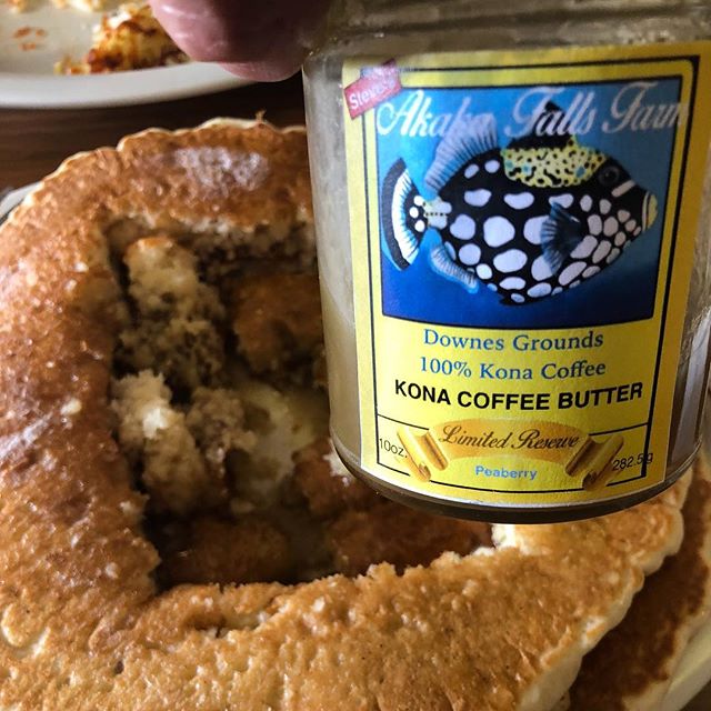 Just tried Steve’s Akaka Falls Farm Kona Coffee Butter made with Down’s Grounds Peaberry Coffee on pancakes at Hawaiian Style Cafe. OMG 😲. This is the 1st time I’ve tried the coffee butter hot. It is a completely different amazing mouthgasm.